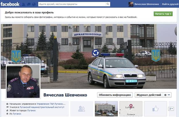 Для информирования граждан о деятельности ГАИ и обмена информацией между руководством службы и участниками дорожного движения в социальной сети Facebook появилась страничка начальника управления ГАИ ГУМВД Украины в Луганской области Вячеслава Шевченко.