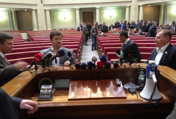 По состоянию на 12:11 «Батькивщина», «Удар» и «Свобода» проводят совещание в зале.