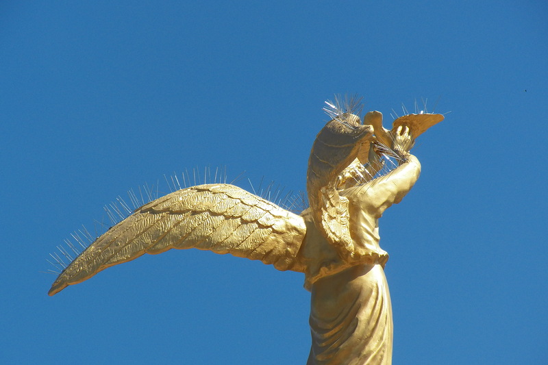Ну гадят голуби — ну и что дальше? Они же не кислотой это делают. Раз в год — или, если угодно, два — подгоняется автовышка с парой рабочих и шлангом воды, памятник моется, и стоит себе дальше красивый. Хотя, объективно говоря, снизу вообще не видно, что там у него, десятиметрового, на голове и плечах…