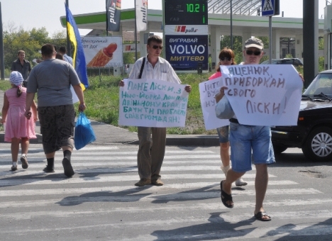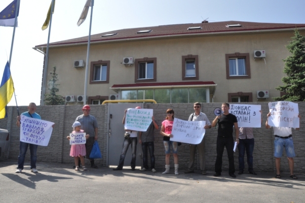 Общественные активисты ГО «Луганцы» и шахтеры из Первомайска пикетировали офис украинского бизнесмена с транспарантами: «Интер-инвест уголь» разрушил Лиски!» и «Яценюк, приборкай свого Ліскі!».