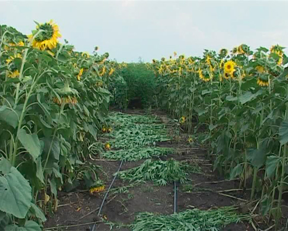 Неизвестные высадили наркосодержащее растение между поздними подсолнухами, которые не требуют постоянного ухода.