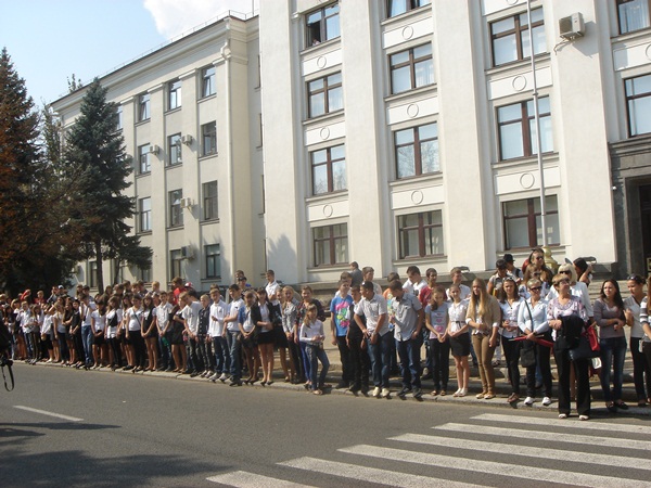Участников колонны приветствовали учащиеся учебных заведений Луганска и Луганской области.