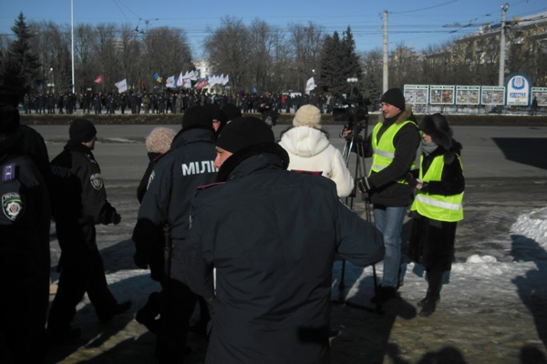 Много говорили о союзе братских государств (Украина, Россия, Белоруссия), о недопущении кровопролития в стране, за поддержку политического курса «Партии Регионов», формировании дружины самообороны и о недопущении «фашистских» действий со стороны радикально настроенных «евроинтегрирующих» активистов. Не обошлось и без казусов, с акции буквально прогнали журналиста и оператора «5 канала», которые пришли вести сьёмку с соседней акции оппозиции. Под общее скандирование «лжецы» толпа оттеснила их к проезжей части, кто-то даже запустил в журналистов куском снега, к счастью этим всё и закончилось.