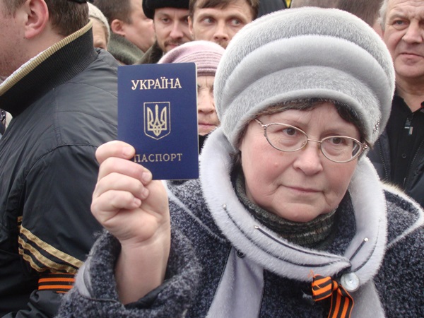 Участники акции показали представителям СМИ свои паспорта гражданин Украины, доказывая всем, что они не заезжие россияне.