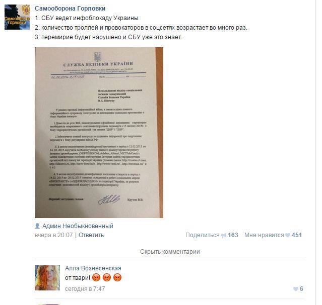 В социальных сетях распространяется фейковый документ СБУ. Как видно на фото документа документ составлен от Крутова В.В. начальнику «отдела специальной связи и коммуникаций» СБУ В.А.Пинчука. Составители данного фейкового документа видимо плохо изучили информацию, прежде чем подделывать подобного рода документ.