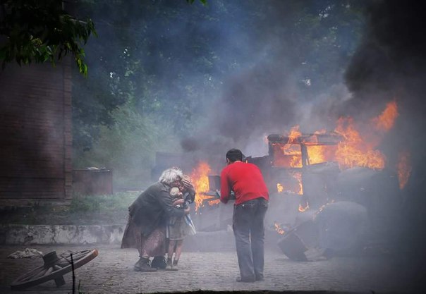 На фото – маленькая девочка, рыдающая на фоне мертвой пожилой женщины. Боевики используют это фото в кампании «Save Donbass people».