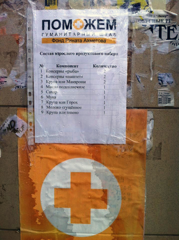 Рекламный щит гласит "Территория истины", а под щитом люди, получили ахметкину гуманитарку и ждут маршрутку, чтобы довезти это "добро" в свою "норку". А в сером здании живут те, кому давно "пара дамой"! А на деревьях развешены объявления - сдавать кровь для тех, кого здесь нет. Вот такая "Территория истины", где все строится на брехне:)»