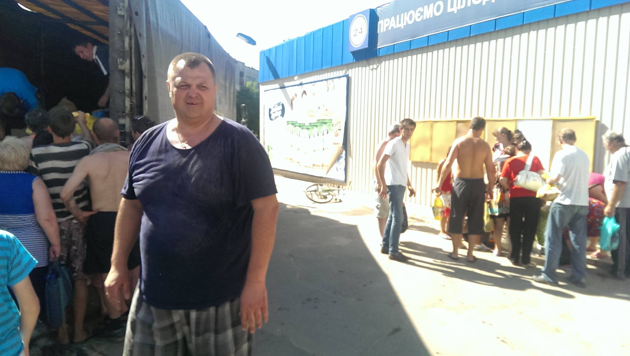 Приехала машина с недобитым местным «ополчением», тогда в городе не было армии, и мы были фактически первыми кто попал на ту часть города. Они долго стояли и смотрели со стороны, не понимая, кто мы и что мы делаем, но то ли что - то человеческое у них осталось, не стали стрелять по нам, по людям, стоявшим в очереди. Были и провокации мародеров, которые хотели разбить магазин АТБ…. но тогда в тот момент никто не думал о себе, хотелось помочь людям…».