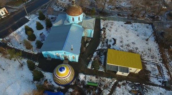 Купол храма в Новосветловке (тот храм, который в прошлом году красная МАКСИМЕЦ уничтожила силами карателей и созгла вместе с жителями) вот ему новый купол поставили.
