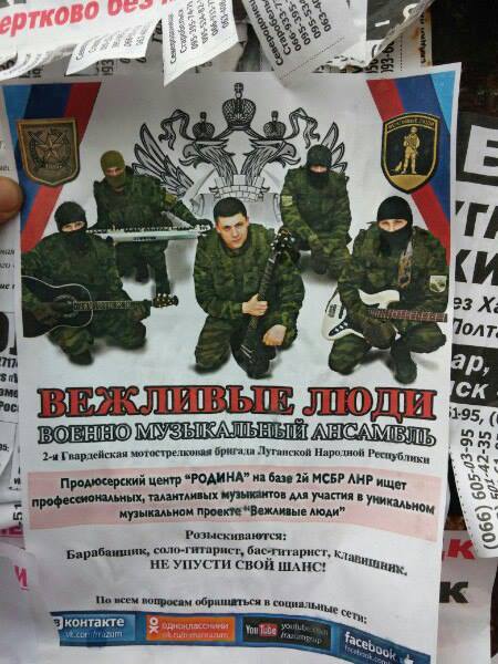 Одно из бандитских подразделений террористов «ЛНР» решили создать музыкальный ансамбль под названием «Вежливые люди».