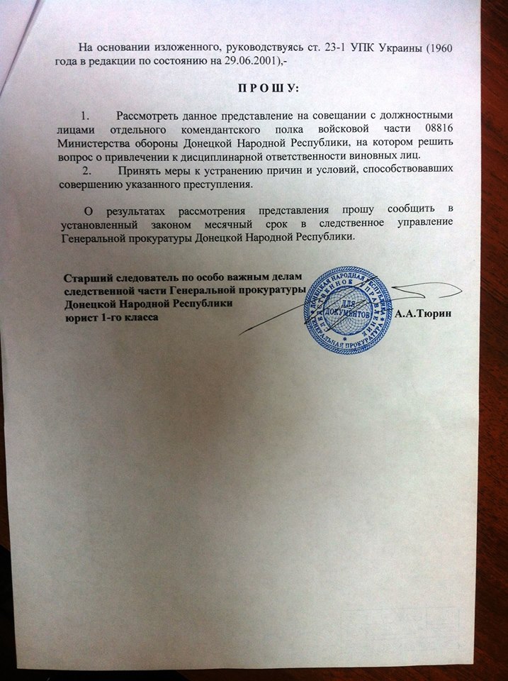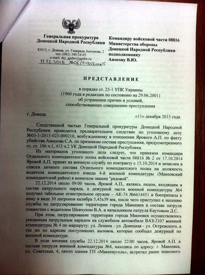 Соответствующие документы опубликовал у себя на странице в «Фейсбук» глава Национальной полиции в Донецкой области Вячеслав Аброськин.