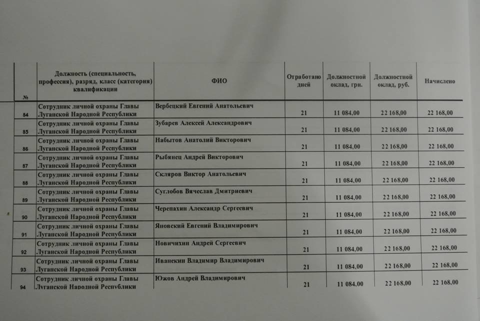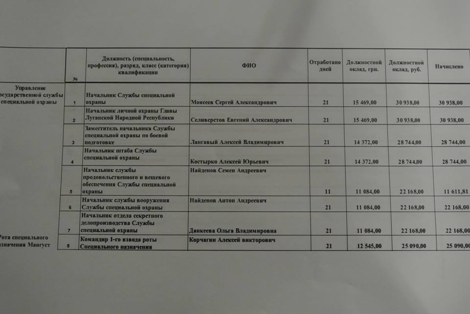 В сети опубликовали поименный список с ведомостью по зарплатам, которую получает верхушка «ЛНР».