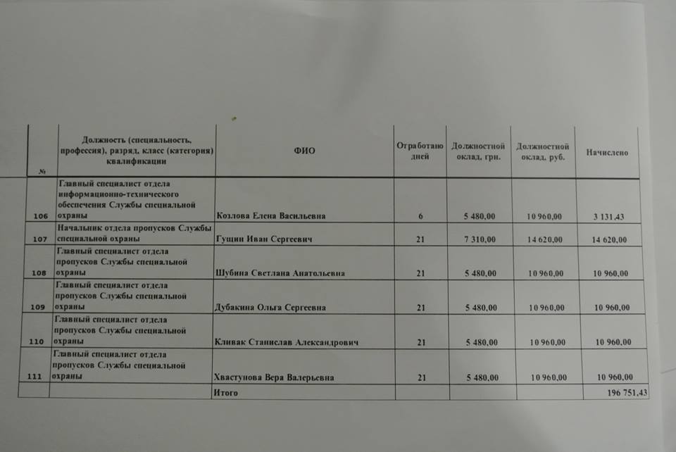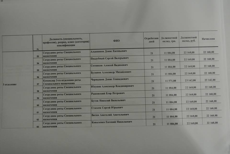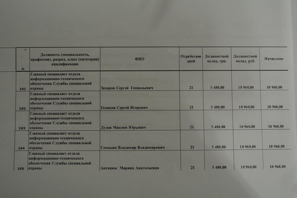 А вот друзья очередной подарочек от наших Украинских патриотов в рядах армии ЛНР (да, и такие есть!!!).Вот Вам зарплатная ведомость с поименным полным списком личной гвардии Плотницкого, с указанием должностей. Именно на штыках эnих людей и держится вся банановая ЛНР! Вы просто посмотрите на эти КОСМИЧЕСКИЕ цифры», - сказано в сообщении группы.