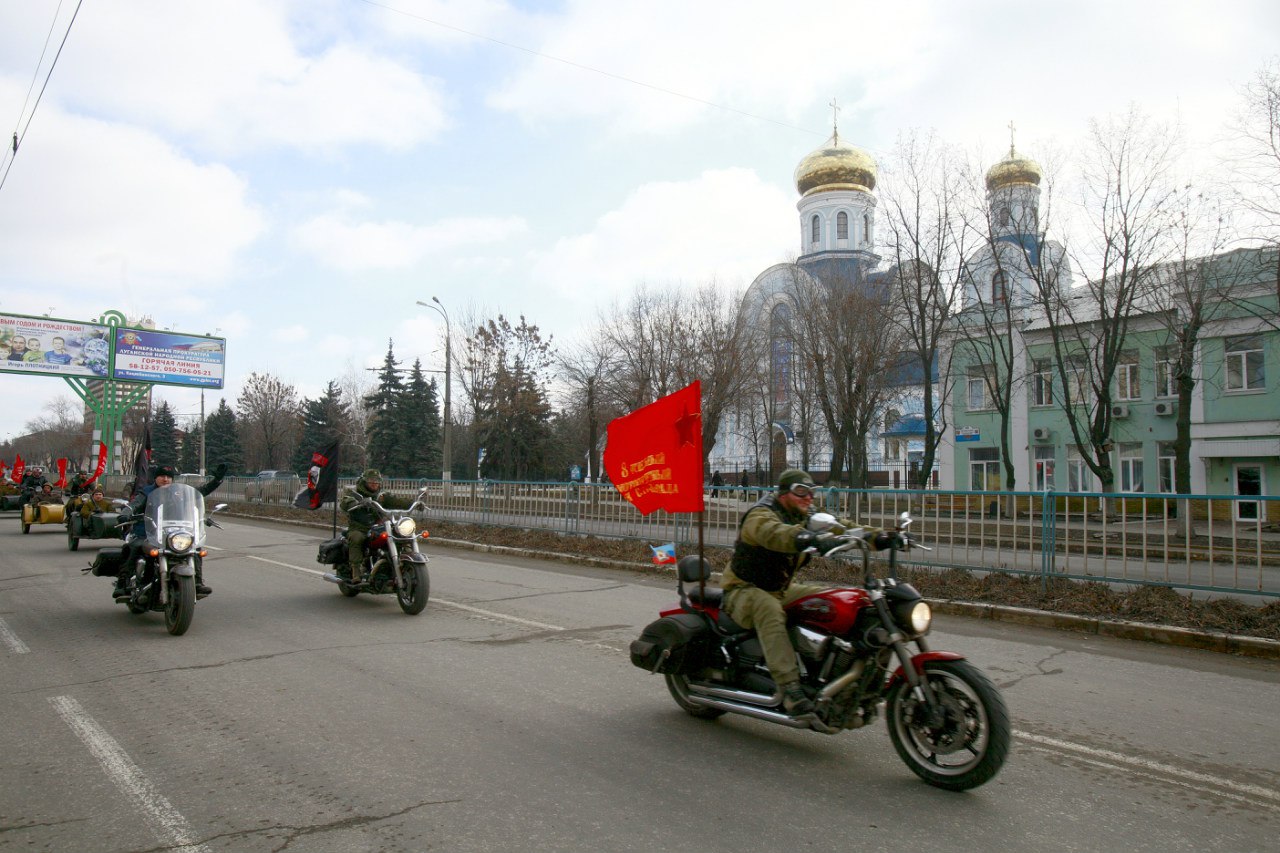 В оккупированном Луганске 12 февраля прошел автопробег байкеров «ночные волки». Об этом сообщает житель Луганска Геннадий Беницкий в Фейсбук.