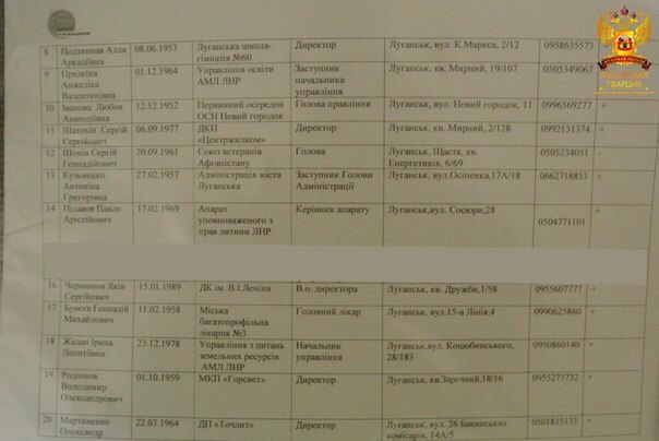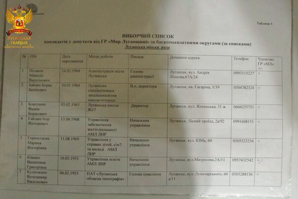 В социальных сетях, в группе «Луганская гвардия» был опубликован список так называемых «кандидатов» в «Луганский горсовет».
