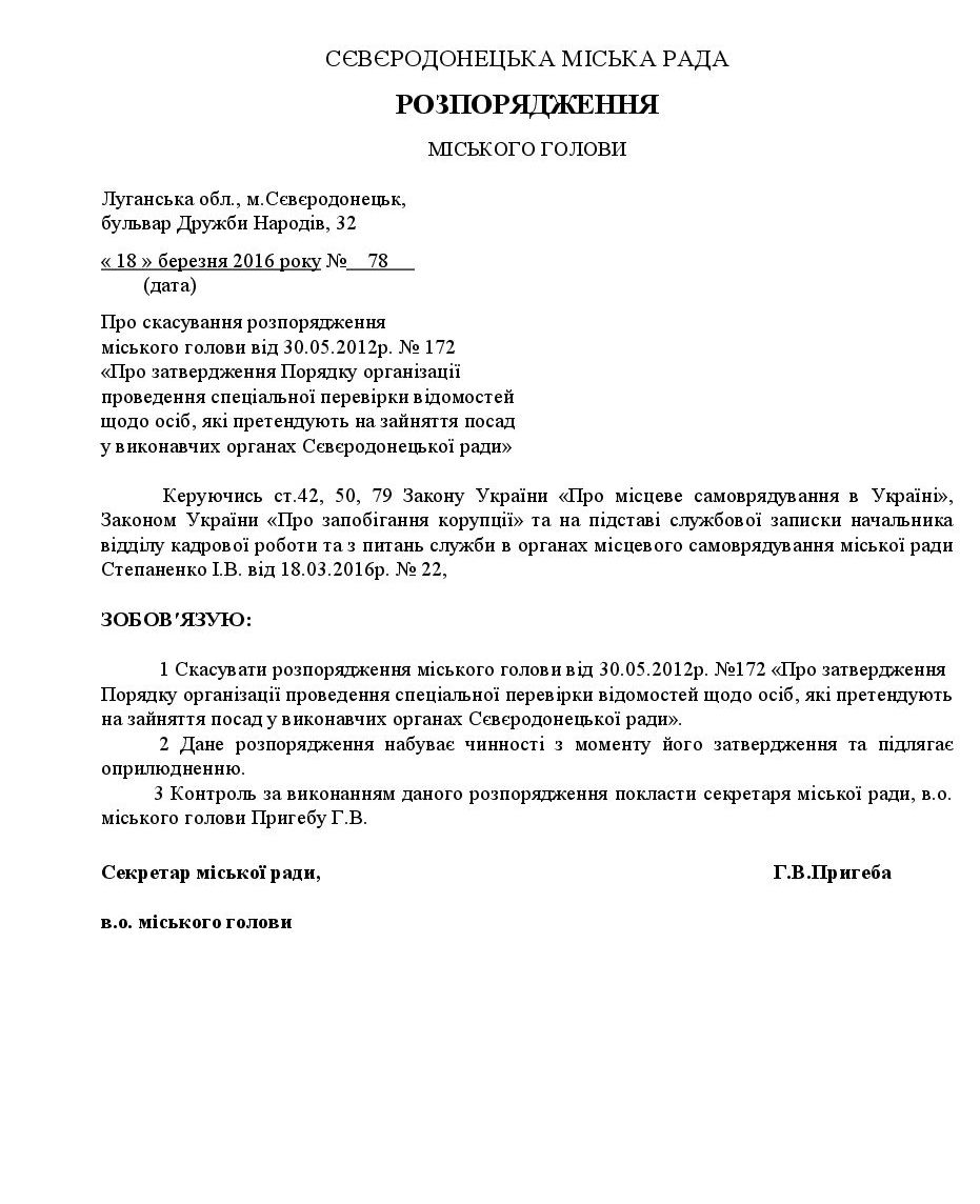 Распоряжение размещено на сайте Северодонецкого городского совета.