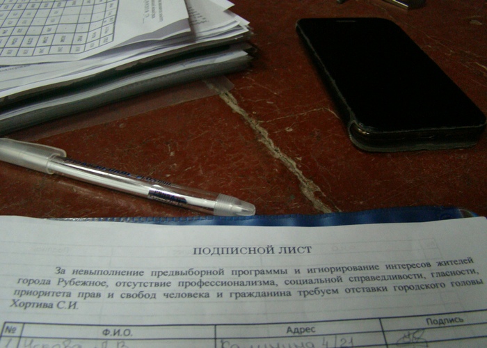 Палатка, по сбору подписей, была установлена возле Центрального рынка и в районе Ласточки, возле школы №3, где все желающие рубежане могли выразить свое отношение и свою позицию по поводу закрытия учебного заведения и самого городского головы Сергея Хортива.