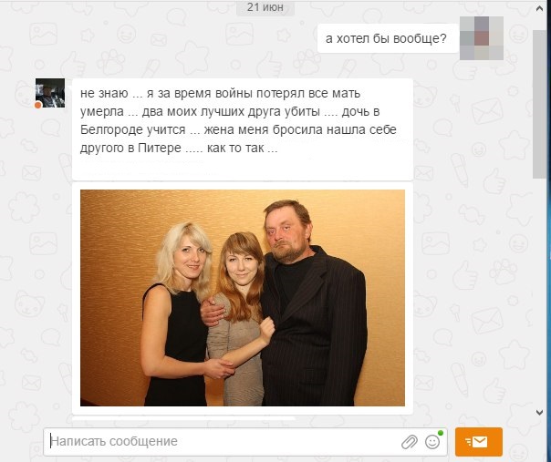 «За время войны я потерял все: мать умерла, два лучших друга убиты, дочь уехала в Россию з женой, и супруга нашла себе другого», - пишет террорист.