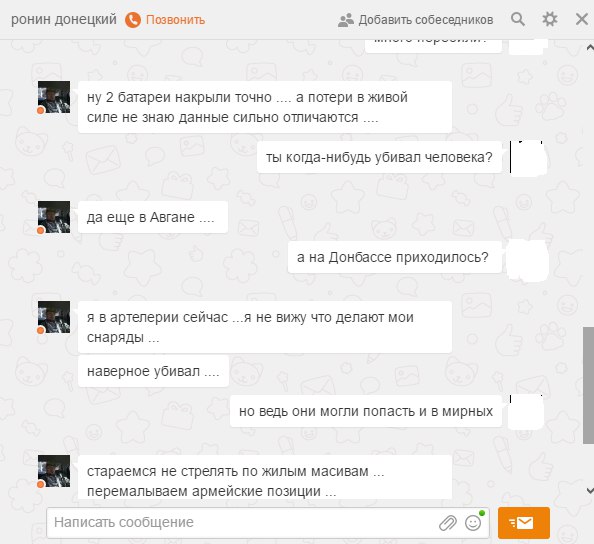 В сети была опубликована переписка между участником одного из артиллерийских подразделений террористов «ДНР» и пользователем социальных сетей.