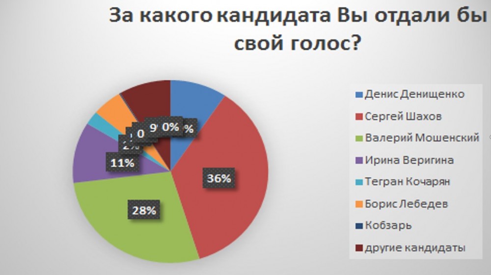 Местные жители, согласно социальному опроса, отдали бы свой голос за Сергея Шахова, на втором месте по предпочтениям – Валерий Мошенский, на третьем – Ирина Веригина и Денис Денищенко.