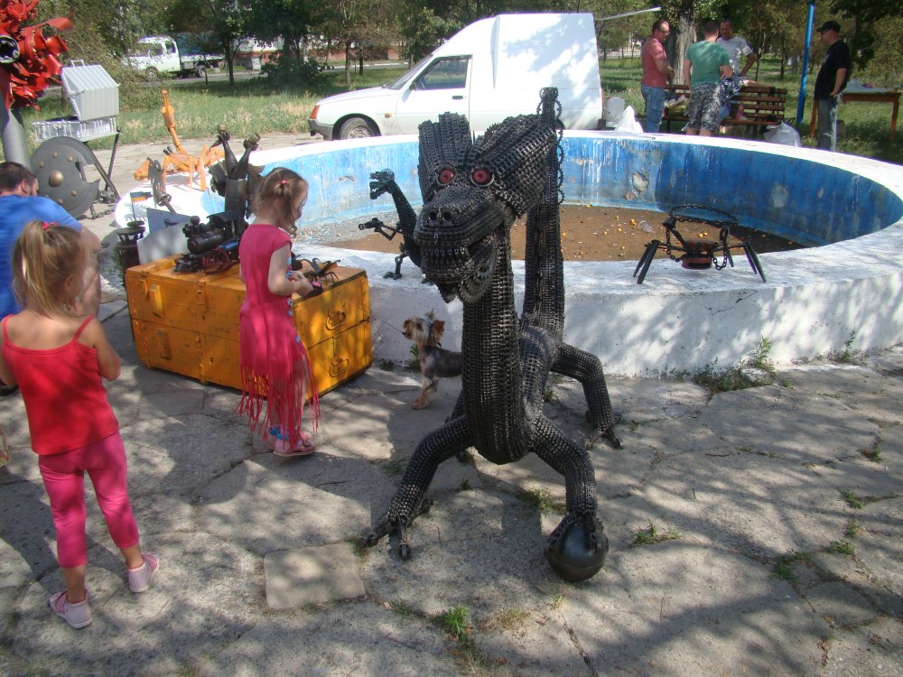 С самого утра на площади Победы началась целая масса мероприятий. Проходили различные выставки творений народных мастеров, картин, деревянных фигур, доспехов, достижений современной техники. Все представленное на выставках можно было пощупать, узнать, как это делается и даже поучиться у мастеров.