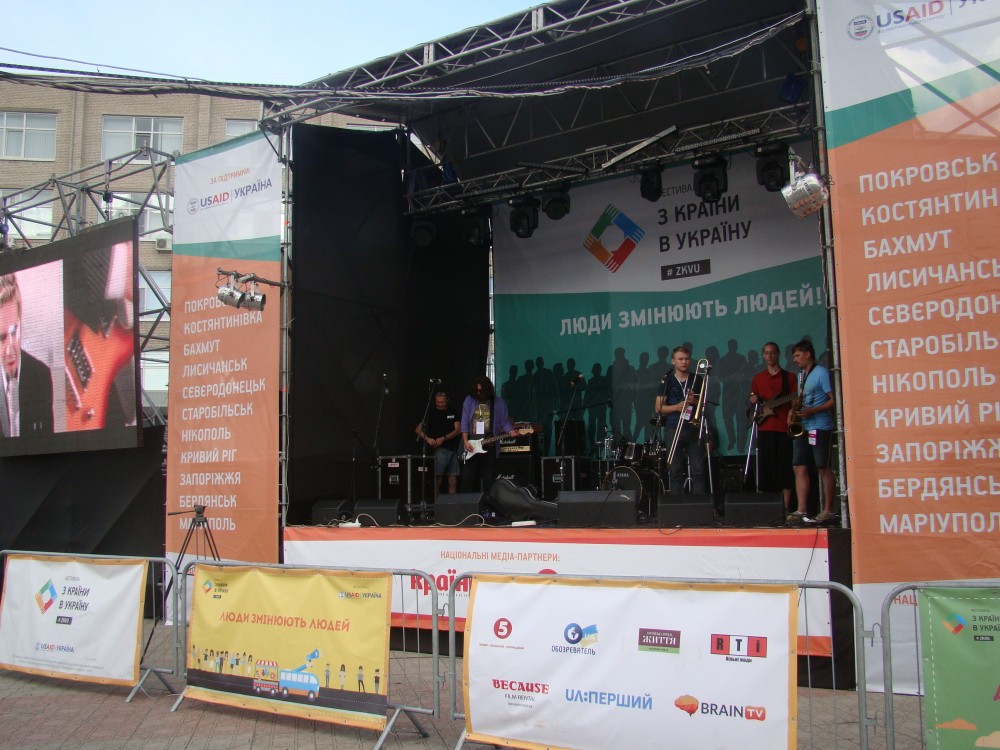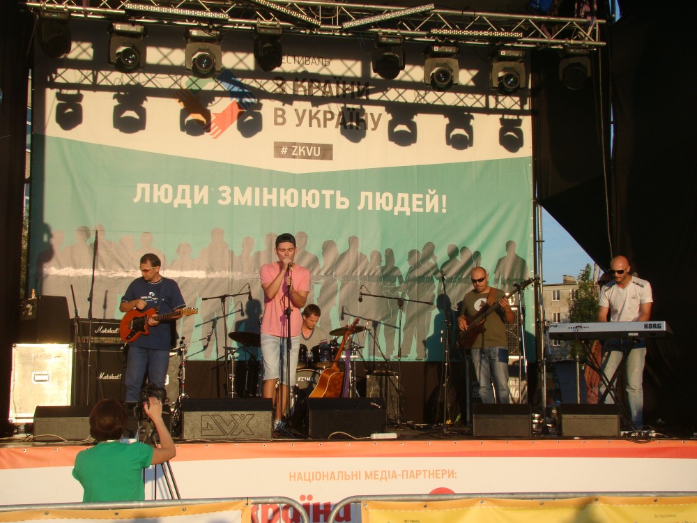 Вечером начался концерт, на которым выступали как группы из Киева, так и из Северодонецка. Присутствующие поддерживали артистов, хлопали им и подтанцовывали.