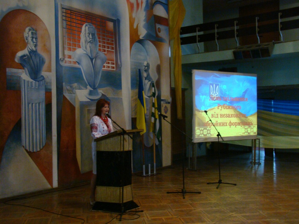 Сегодня, 21 июля жители города Рубежное, Луганская область отметили вторую годовщину освобождения города от террористов «ЛНР». Праздник проходил в городском Дворце культуры. Зал украсили в цвета государственного флага Украины, многие гости пришли в вышиванках, горды своим происхождением и родиной - Украиной.