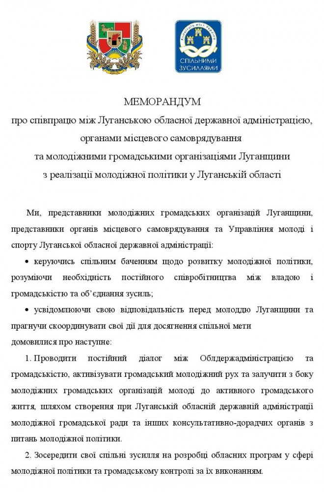 Сегодня, 29 июля в Северодонецке 23 общественные молодежные организации во время областного форума подписали Меморандум о создании Областного молодежного совета при Луганской ОГА/ВГА.