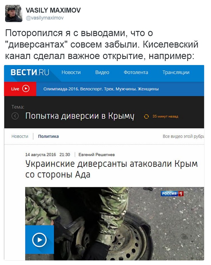 Новини із соціальних мереж Будни "сверхдержавы". О чем говорят в России 15 серпня 2016 в 09:50 1249 О России, как и в самой России говорят очень много. Мы продолжаем серию подборок самых интересных постов в соцсетях за последнее время, и делимся лучшим с вами. Смотрите также предыдущие подборки: 1, 2, 3. Артем ТемненкоРедактор стрічки новин суспільно-політичного оглядача ТРИБУН Якщо ви помітили помилку, виділіть необхідний текст і натисніть Ctrl + Enter, щоб повідомити про це редакцію.