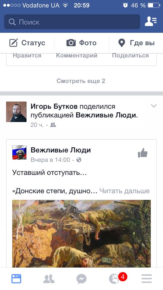 Депутат Северодонецкого городского совета Игорь Бутков, от партии «Оппозиционный блок», публикует на своей странице в социальной сети выдержки из паблика оккупантов «Вежливые люди».