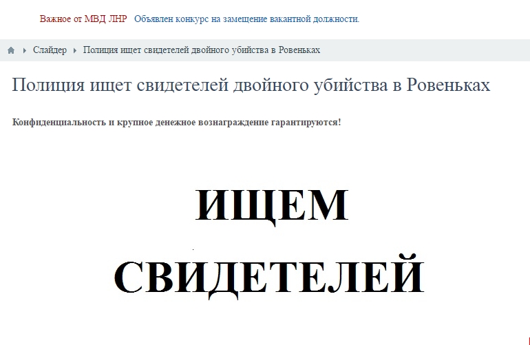 «Уважаемые граждане! Если вам что-либо известно о данном преступлении, МВД ЛНР просит вас оказать помощь следствию. Важна любая информация. Конфиденциальность и крупное денежное вознаграждение гарантируются!», - пишут террористы