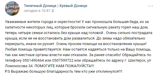 Также, по словам местных жителей, самоназванная "власть" в помощи им отказала.