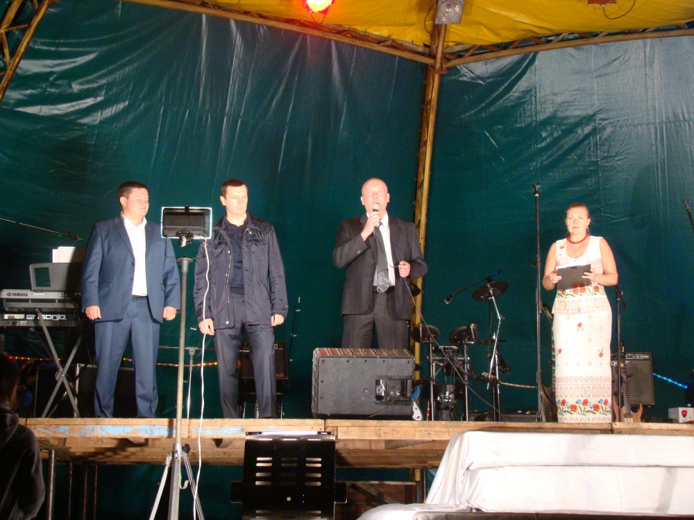 От лица жителей соседнего Лисичанска гость поздравил рубежан с праздником и вручил в руки мэра Сергея Хортива подарок - картину с белыми лебедями, символизирующими семью, вечную любовь и преданность.
