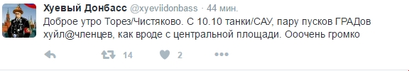 Сегодня, 4 сентября в соцсетях переполох вызванный увеличившейся активностью оккупантов. По словам пользователей, все утро террористы ведут огонь из танков, "Градов" и САУ в районе Тореза: