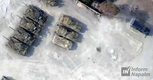 Международное разведывательное сообщество InformNapalm обнаружило два танка (калибр 125 мм) и около 12 единиц бронированной техники под поселком Раздольное Донецкой области.