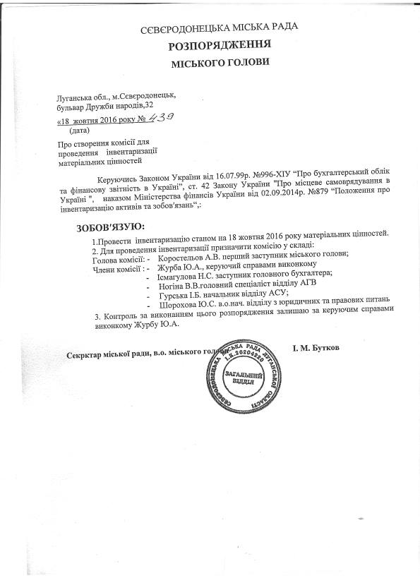Секретарь Северодонецкого городского совета Игорь Бутков, согласно распоряжению от 18.10.2016 г. передал кабинет мэра Валентина Казакова, заместителю Кузьмину О.Ю.