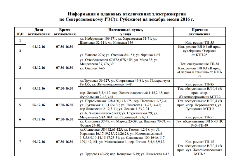 В Рубежном Луганской области планируется плановое отключение электроэнергии по Северодонецкому РЭС.