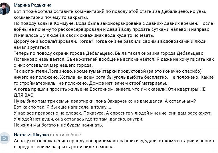 Сейчас мы публикуем пост жительницы Дебальцево, касаемо непосредственно данной пропагандистской статьи.