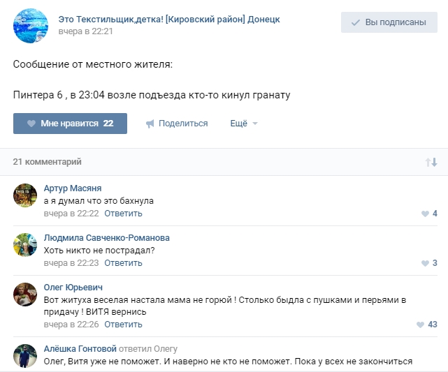 Вчера, 25 декабря, на улице Пинтера 6 оккупированного Донецка произошел взрыв гранаты.