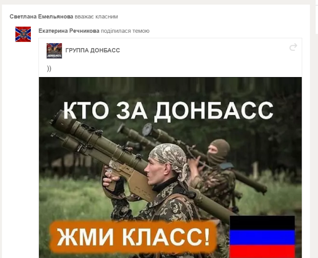 Сестра Пресняковой Светлана Емельянова оккупированный город Новоазовск считает Россией и публикует фото террористов «Л/ДНР»: