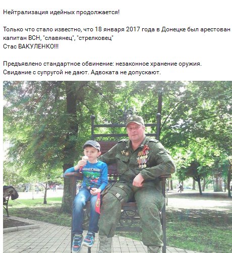 Появилась информация, что 18 января в оккупированном Донецке боевики задержали своего "коллегу" Станислава Вакуленко, который состоял в рядах "ДНР" еще со времен Гиркина в Славянске.