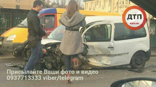 Сегодня, 6 марта в Киеве на улице Межигорской произошло лобовое ДТП.