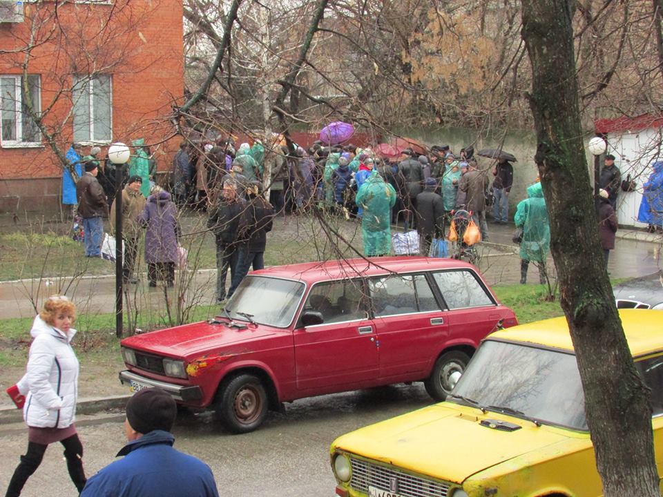 Сегодня, 20 марта, в прифронтовой Станице Луганской возле здания "Ощадбанка" огромная очередь из проживающих на оккупированной территории пенсионеров и переселенцев, которые пытаются пройти идентификацию.