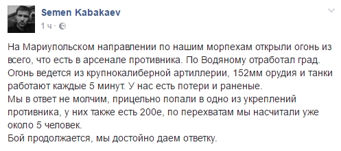 Боевики открыли огонь по украинским морским пехотинцам из всех видов вооружения.