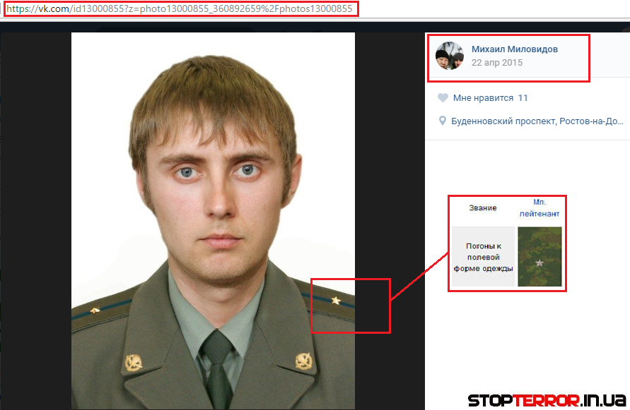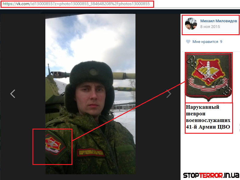 Удалось установить, что Миловидов Михаил является военнослужащим 41-й Краснознамённой армии — оперативное войсковое объединение Вооружённых Сил Российской Федерации в составе Центрального военного округа. И находится в звании младшего лейтенанта ВСРФ.