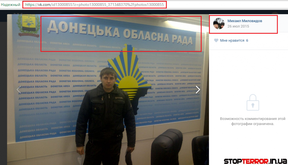В 2014-м году Миловидов являлся одним из участников дестабилизации ситуации на территории Украины. Будучи военнослужащим РФ, он находился в Донецке в здании захваченной ОДА.