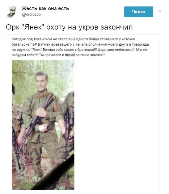 Террорист "Янек" из банды "Бэтмен" был ликвидирован под Луганском.