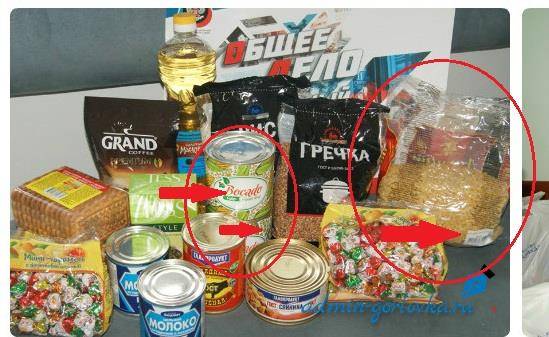 "В этой ситуации печалит не то, что люди вместо денег и зарплаты получили продукты, а то, что в состав пайка от "ДНР" снова-таки вошли "отжатые" у гуманитарного штаба "Поможем" продукты - банка консервированного горошка и макароны. С макароно, кстати, даже фирменный стикер фонда не сорвали", - пишет пользователь.