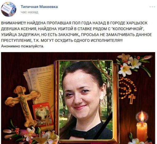 Пропавшая полгода назал в оккупированном Харцызске девушка Ксения найдена мертвой в ставке.
