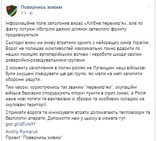 По информации волонтеров "Повернись живим", боевики не оставляют попыток нанести прицельный удар по позициям сил АТО артиллерией и наделать беды действием своих ДРГ.